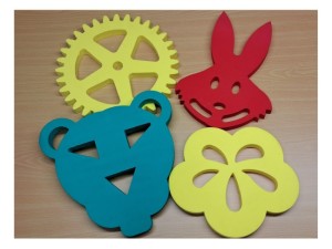 Zwemplank leeuw, haas, tandwiel en wolk, afm. gem. 30x25x2,5 cm. Stevig EVA materiaal.